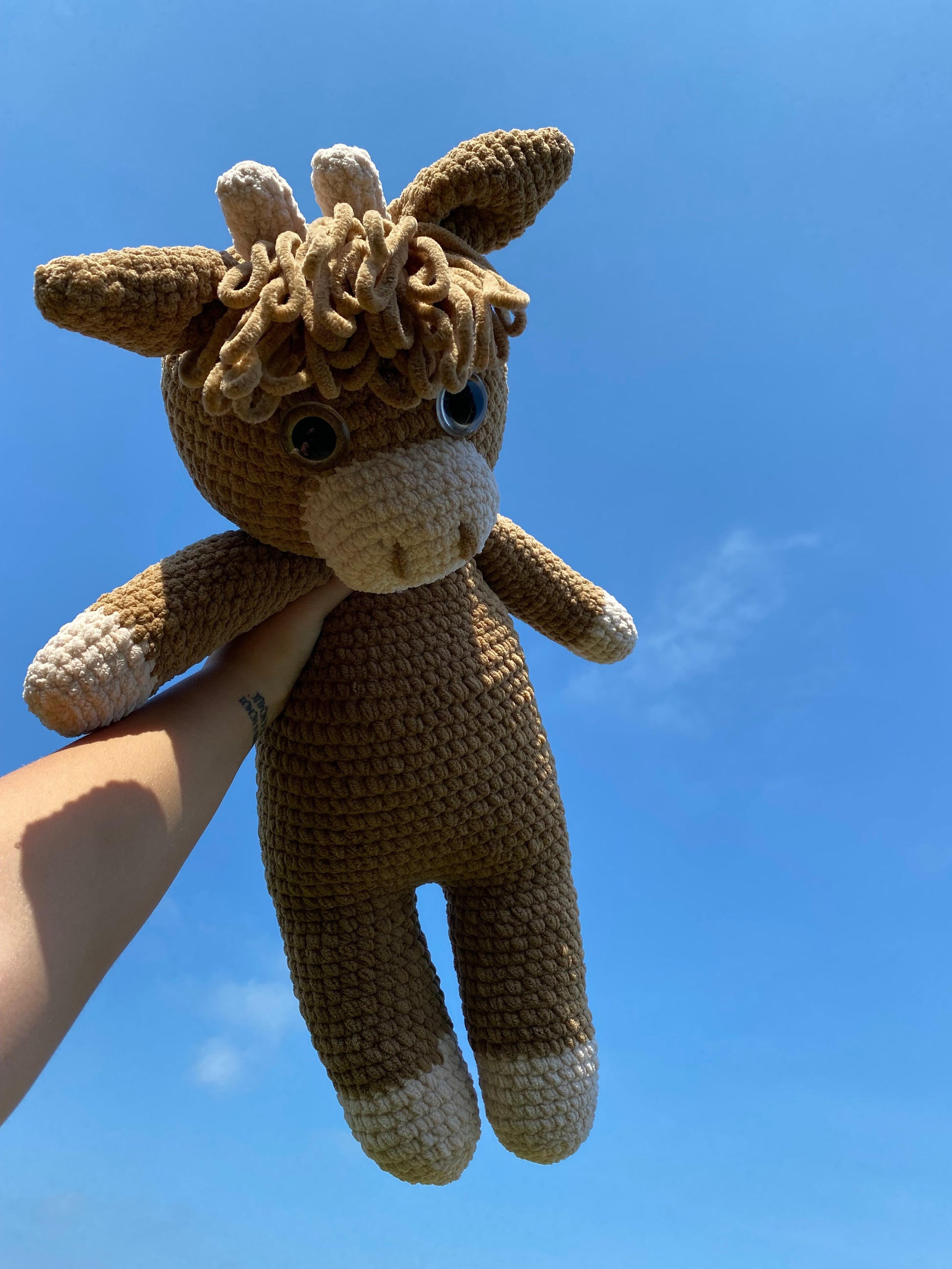 This beautifully handcrafted 70cm Crochet Highland Cow is made with ultra-soft plush yarn, giving it that luxurious, cloud-like feel. With its floppy legs, fluffy fringe, and oversized glossy eyes, this statement piece is designed to stand out in any room.